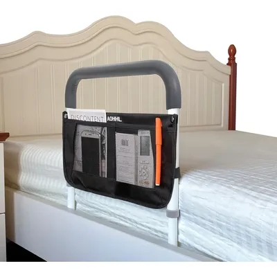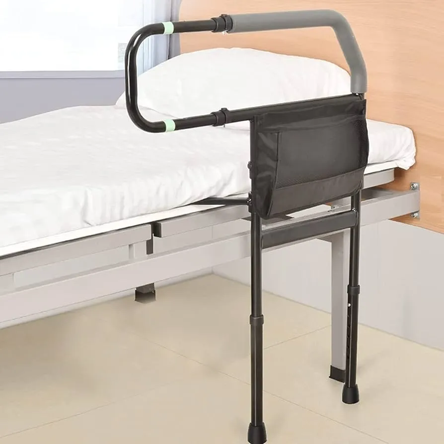 The adjustable bed rail provides stability and support when getting in and out of bed, improving safety and confidence for seniors.